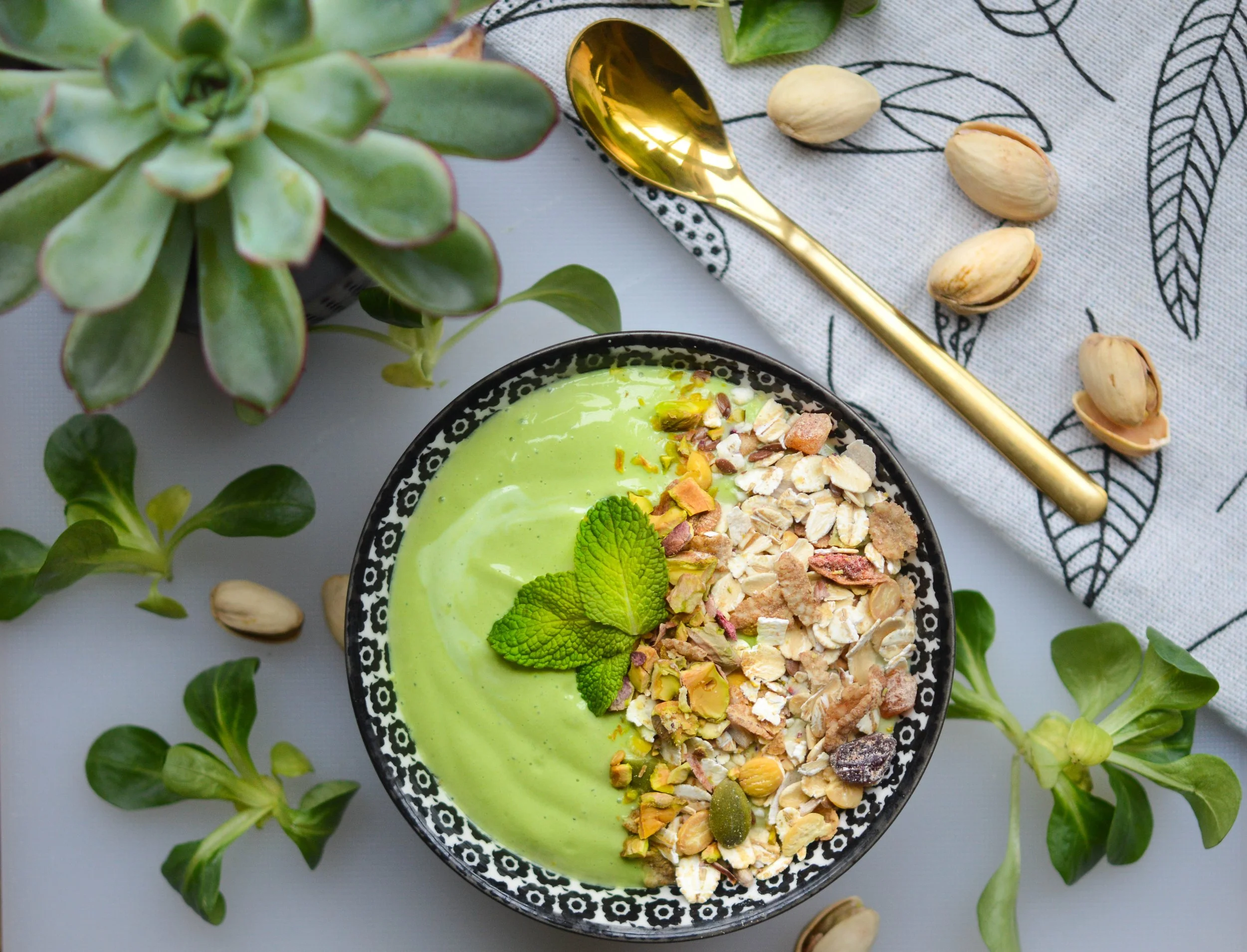 High in antioxidants, naturally sweet with no added sugar. This banana, soya, pistachio and green tea infused breakfast smoothie will give you the boost you need in the morning!